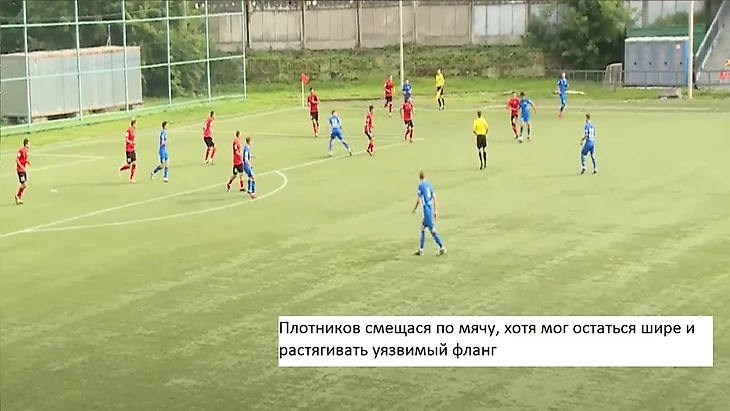 Опять смещение игрока в центр, в этом эпизоде открытый фланг не был заполнен, и команда потеряла мяч.