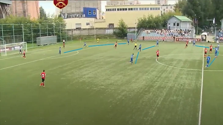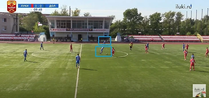 Из прошлого мини — обзора из Верхних Лук, мы знаем, что хозяева вскрывают зоны между ЛЗ и ЦЗ. По первым минутам «Луки» пробовали вскрыть именно эту зону: