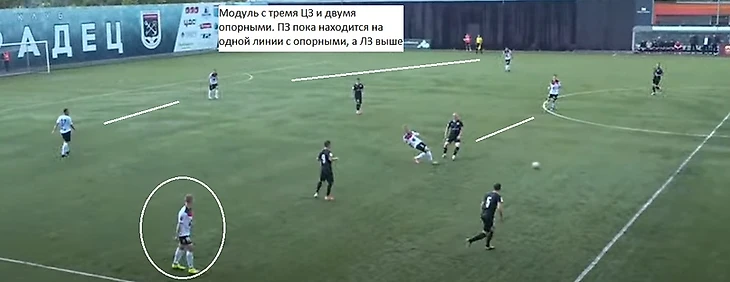 Обращаем внимание, что оба фланговых защитника уже на чужой половине ( Ятченко нет в кадре).