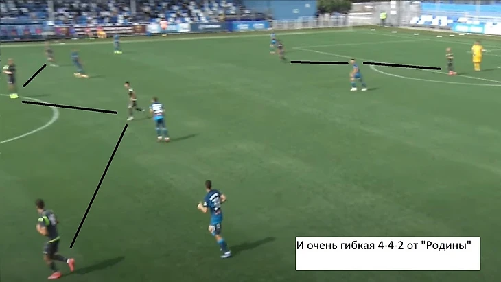 А «Родина» решила играть в 4-4-2 при обороне и 2-4-4 при билд-апе: