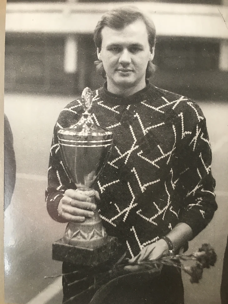 — Наверное, лет в семь пришёл в спорт: в первом классе учился. Раньше был дворовый футбол и хоккей. Зимой стоял на воротах в валенках. Мимо парень проходил, говорит: «Есть детский клуб «Факел» на улице Гагарина в Белгороде. Там хоккейная коробка». Пришёл туда: ни коньков, ничего нет. Дефицит был. Раздобыл где-то «дутыши». Из валенок вырезал задники, чтобы нога не болталась. Потом клюшку дали, и потихонечку вот так всё пошло. А летом, естественно, играли в футбол. Лет в 14 встал выбор: хоккей или футбол? Хотя в третьем классе приезжали за мной из хоккейного ЦСКА: как-то лучше получалось играть в хоккей. Ещё не было ни «Космоса», ни «Оранжевого льда», а хотелось чем-то заниматься. В футбол тоже получалось, поэтому ушёл в ДЮСШ к Евгению Алексеевичу Сахаренкову. А потом получилось так, что в 16 с небольшим лет я дебютировал за «Салют» во второй лиге.