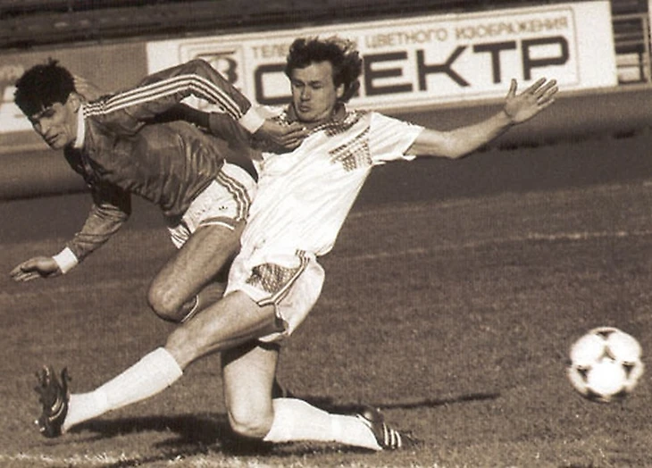 — Через два дня после того, как приехал, – игра с тбилисским «Динамо». Слева у нас играл Слава Медвидь. На первой минуте он получает мяч, я стою впереди. Мои мысли: «Сейчас сместится в центр, уберёт влево и пробьёт – мяч попадёт в штангу». Он так и делает. Мяч попадает в штангу, а я уже стою и забиваю головой. Вторая минута – 1:0 ведём. Потом Шенгелия сравнивает. Трава высокая. Пас даёшь – мяч притормаживает. Ну я Сулаквелидзе подзагонял чуть-чуть. И в конце он отдаёт Габелии, мяч тормозит, а я уже там – 2:1 на 85-й минуте.