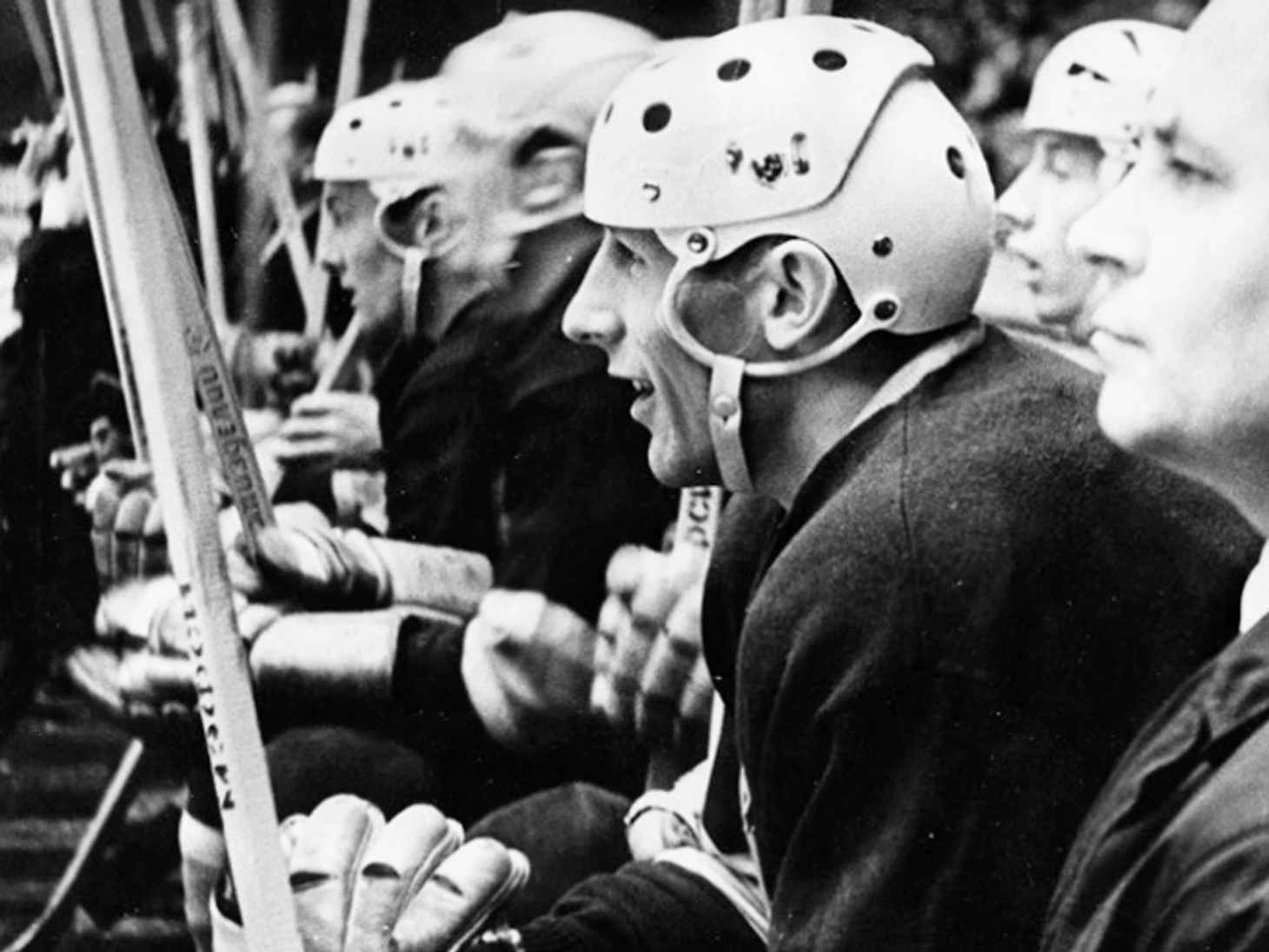 Сезон 1966/67. ЦСКА - «Динамо» (Москва). Перед вратарем Орчаков и Брежнев.