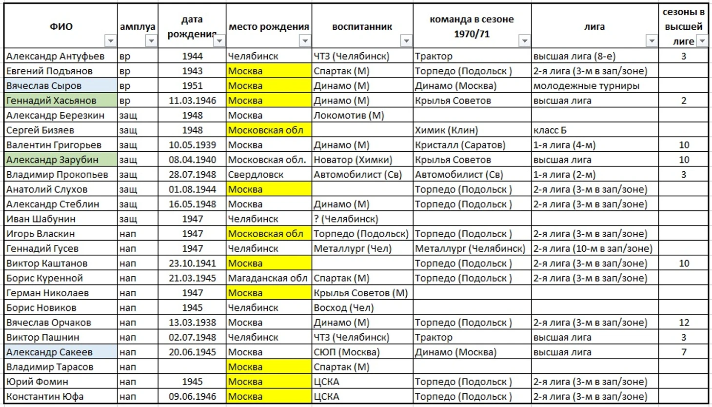 Как видим, основную помощь в создании в Ташкенте команды с нуля принимал московский регион – столица и область. А костяк был из подольского «Торпедо». Интересно проследить за судьбой этой команды. 1967/68 – 1 место в финальной пульке класса «Б». 1968/69 – 8 место из 11 в западной зоне второй группа класса «А» (аналог второй лиги). 1969/70 – 3 место из 12 в западной зоне третьей группы класса «А» (аналог второй лиги). 1970/71 – 3 место из 13 в западной зоне второй лиги класса «А». После этого сезона группа игроков уезжает в Узбекскую ССР, а команда сползает в подвал турнирной таблицы. 1971/72 – 12 место из 14 в западной зоне второй лиги класса «А». 1972-73 – в классе «А» не участвует. В западной зоне второй лиги сезоне играет «Текстильщик» (Павловский Посад), выигравший сезон назад финал класса «Б». Это последствия торпедовского донорства Узбекистану? Или Федерация хоккея Московской области стала больше благоволить Павловскому Посаду, а не Подольску (за «Химик» из Воскресенска радела Федерация РСФСР)? Так или иначе большой хоккей из Подольск надолго исчезает.