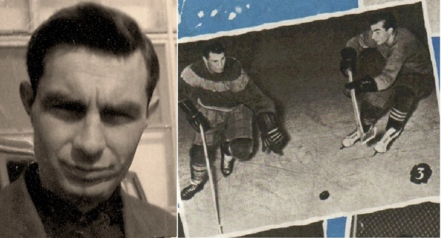 Вячеслав Орчаков - первый капитан в истории ташкентского хоккея. Динамовец Орчаков борется с земляком-спартаковцем Алексушиным (1959 год)