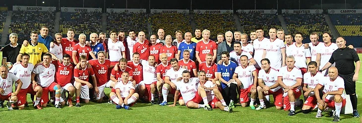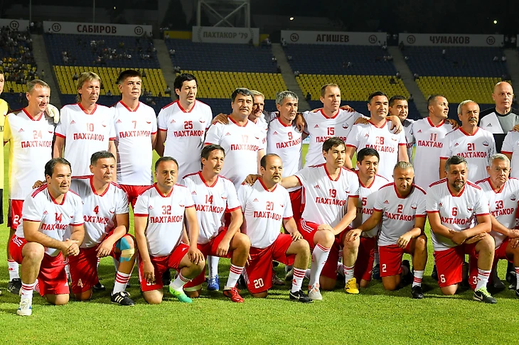 Ташкент. 11 августа 2019 года. Команда игроков «Пахтакора» разных лет и сборная СССР (ветераны)