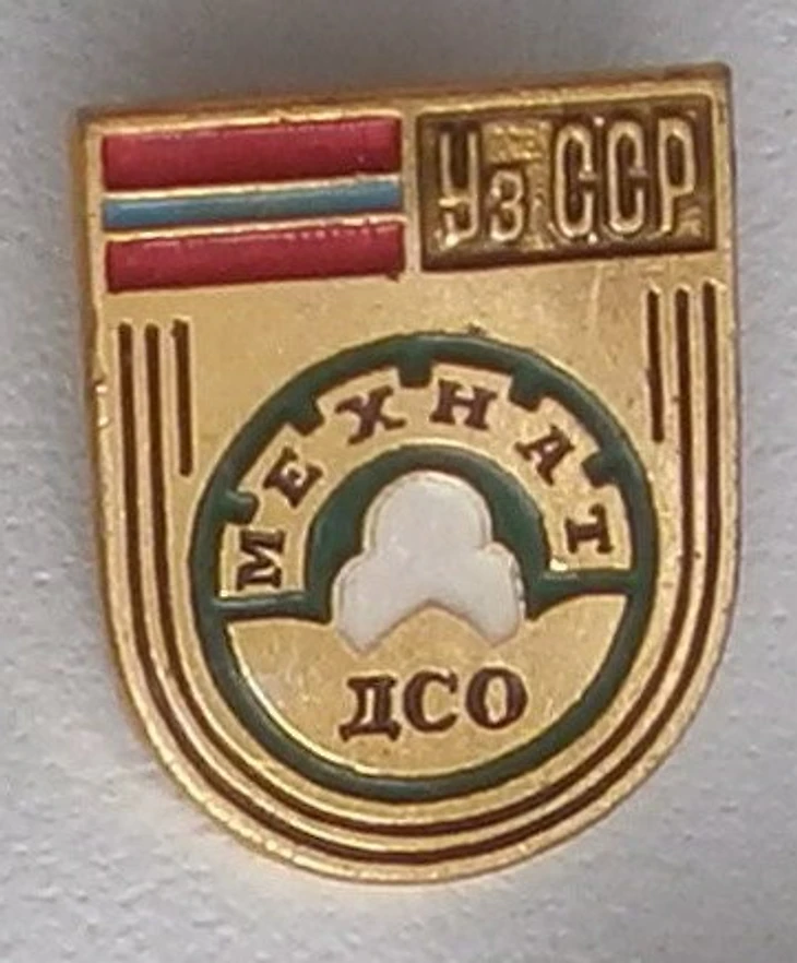 В этом нет ничего удивительного - на эмблеме республиканского ДСО «Мехнат» (объединял работников промышленности, к которому относился «Бинокор») были нарисованы шестеренка и коробочка хлопчатника. В 1982 году, когда заказывали форму, это ДСО еще существовало. Но в том же году все республиканские добровольные спортивные общества, которых было по два на каждую союзную республику, одно объединяло работников промышленности, второе - жителей села (в Узбекской ССР они назывались «Мехнат», что в переводе значило "труд" и «Пахтакор» - "хлопкороб") были реорганизованы в два всесоюзных, получивших название «Труд» и «Урожай» и добавившиеся к уже имевшимся - «Буревестнику» (студенты и преподаватели вузов), «Воднику» (работники водного транспорта), «Зениту» (работники некоторых высокотехнологичных отраслей промышленности, в том числе оборонной), «Локомотиву» (работники железнодорожного транспорта), «Спартаку» (работники государственной торговли, промкооперации, местной, легкой, пищевой промышленности, коммунального хозяйства, автотранспорта, гражданской авиации, культуры, здравоохранения) и «Трудовым резервам» (учащиеся ПТУ и техникумов).