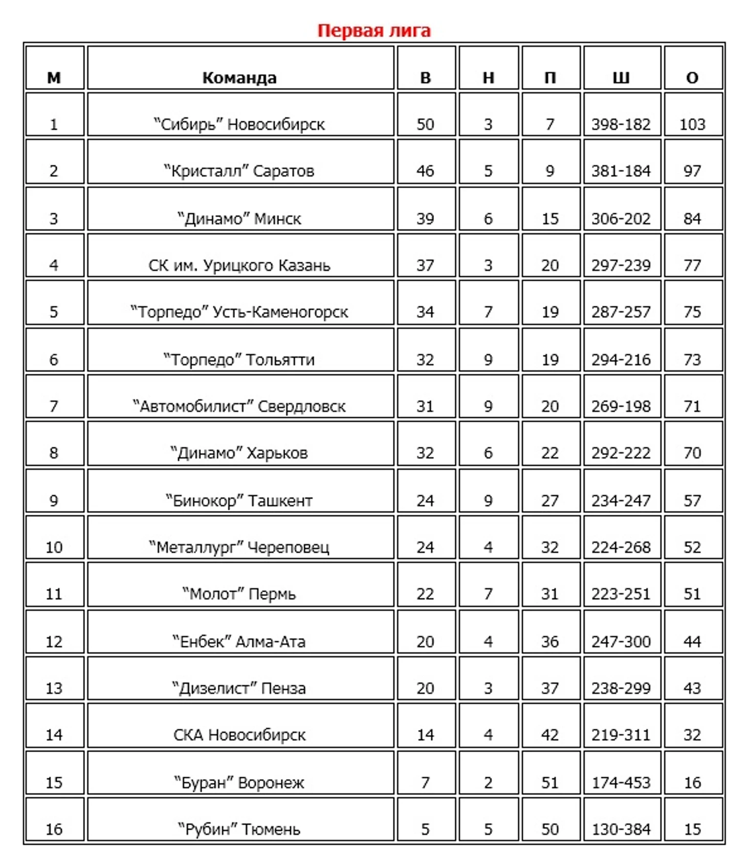 Регламент очередного тридцать седьмого чемпионата страны по хоккею был следующим: «Двенадцать клубов высшей лиги проведут сначала четырехкруговой турнир, который закончится 17 марта. К этому дню определится чемпион СССР, призер чемпионата и команда, занявшая четвертое место. В отличие от прошлого сезона для этих команд пятого, дополнительного круга не будет. Коллективы, занявшие места с пятого по восьмое, проведут между собой дополнительный четырехкруговой турнир и окончательно определят свои места в таблице. И, наконец, четыре клуба высшей лиги, которые после основного этана замкнут таблицу, встретятся с первой четверкой первой лиги. Условия этого дополнительного этапа прежние каждая команда сыграет по четыре матча с каждым клубом другой лиги. Матчи, как и прежде, спаренные. В итоге выяснится худшая команда высшей лиги, которая покинет группу сильнейших, и лучшая команда первой лиги, которая в следующем сезоне выступит в первом эшелоне.
