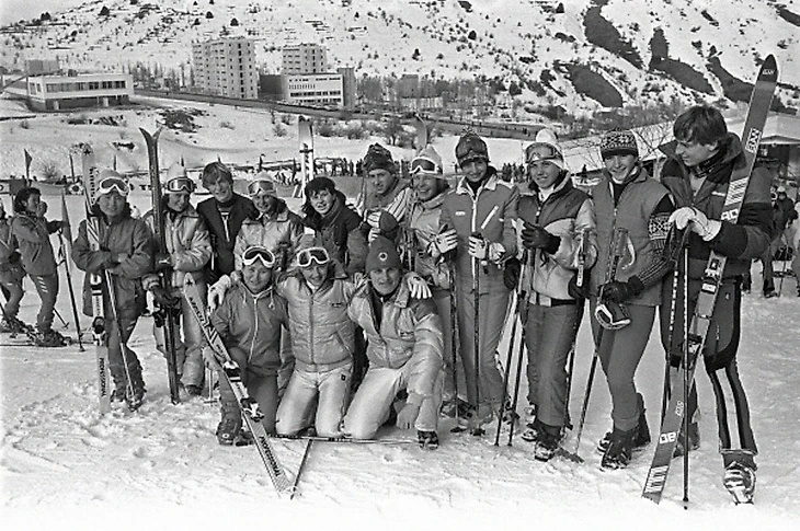 1983. Чимган. Спортсмены-горнолыжники из социалистических стран - участники международных соревнований «Дружба» (Роман Денисов / Библиотека изображений РИА «Новости»)
