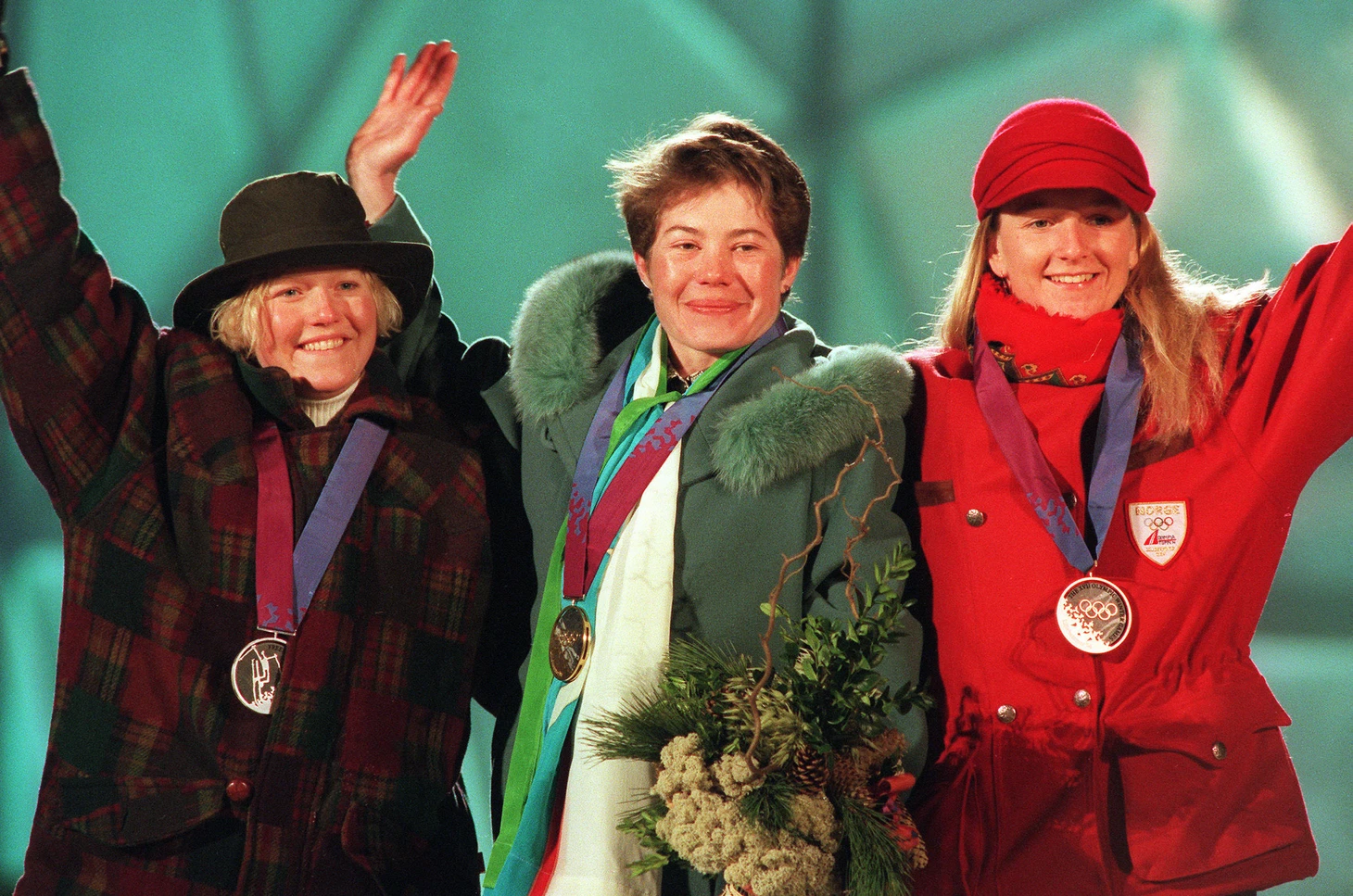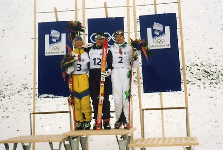 1994. Лиллехаммер. Зимние Олимпийские игры. На пьедестале Мария Линдгрен (Швеция), Лина Черязова и Хильде Сюннёве Лид (Новрегия)