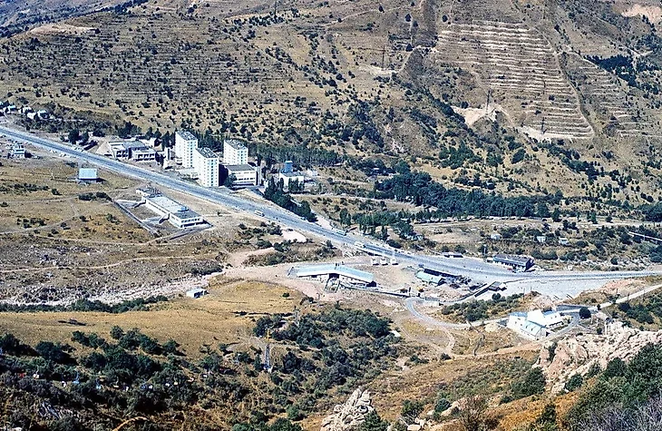 1985. Чимган с высоты канатной дороги. Вид на туристический комплекс «Чимган» (снесен); фотограф Рашит Загидуллин