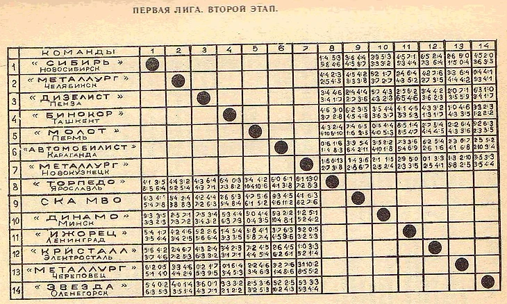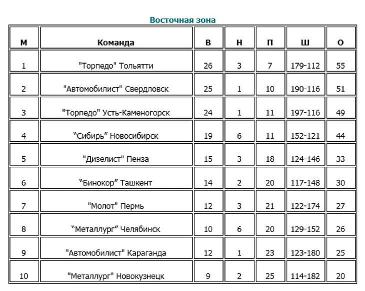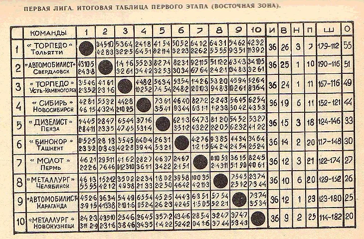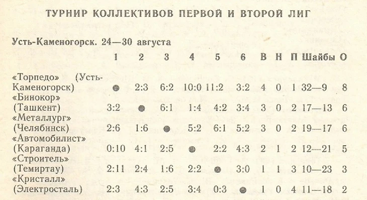 Таблица турнира в Усть-Каменогорске, проходившего в конце августа 1985 года