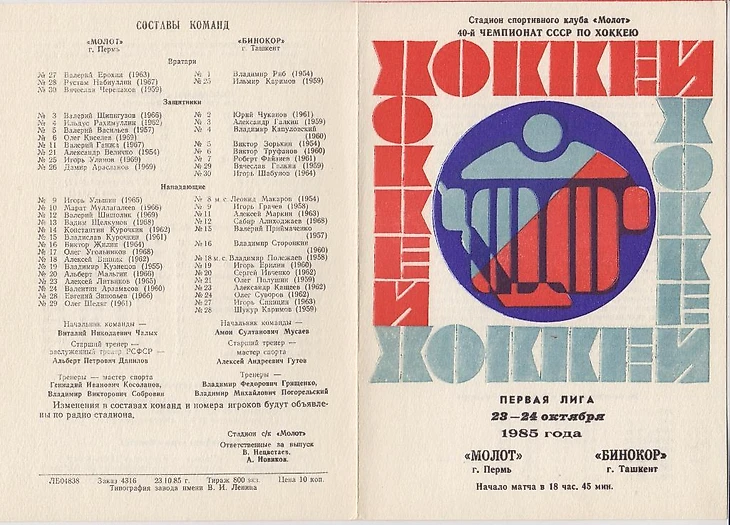 Возможно, если бы не решение Федерации хоккея СССР о реорганизации первой лиги, то «Бинокор» прекратил бы свое существование весной или летом 1985 года. В сезоне 1984/85 годов ташкентцы уверенно выиграли Восточную зону второй лиги, но в финальном турнире шести команд, в котором участвовало по две лучших от каждой зоны, заняли лишь четвертое место пропустив вперед «Автомобилист» (Караганда), СКА МВО (Калинин) и «Металлург» (Челябинск). Для участия в первой требовалось занять третье. Решением хоккейных руководителей первая лига была увеличена с шестнадцати до двадцати команд. Кроме «Бинокора» от таких действий выиграли также хоккеисты «Кристалла» (Электросталь), «Звезды» (Оленегорск) и «Молота» (Пермь), которые должны были попрощаться со вторым дивизионом советского хоккея. В результате пермяки оказались единственной командой, принимавшей участие во всех соревнованиях, проходившихся под эгидой первой лиги.