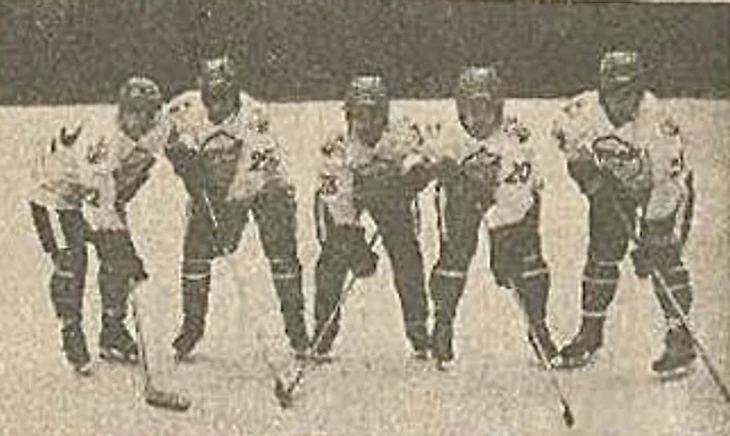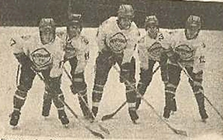1985/86. «Металлург» (Челябинск). Е Зиновьев, А. Емец, Д. Картаев, А. Беленов и Е. Шубников