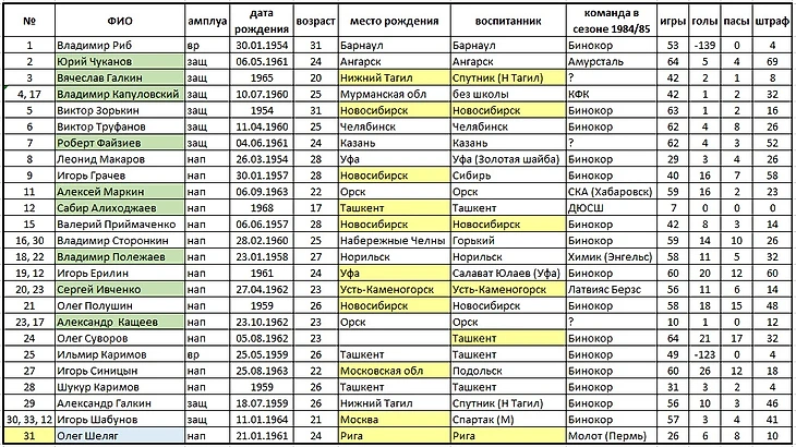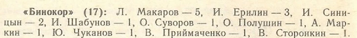 Статистика игроков «Бинокора» в чемпионате СССР 1985/86 годов