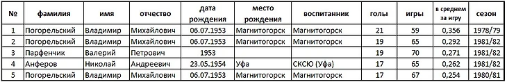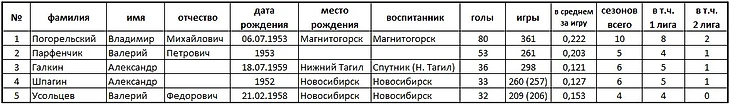 Десять снайперов ташкентцев по итогам всех сезонов в первой лиге