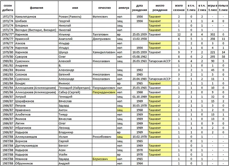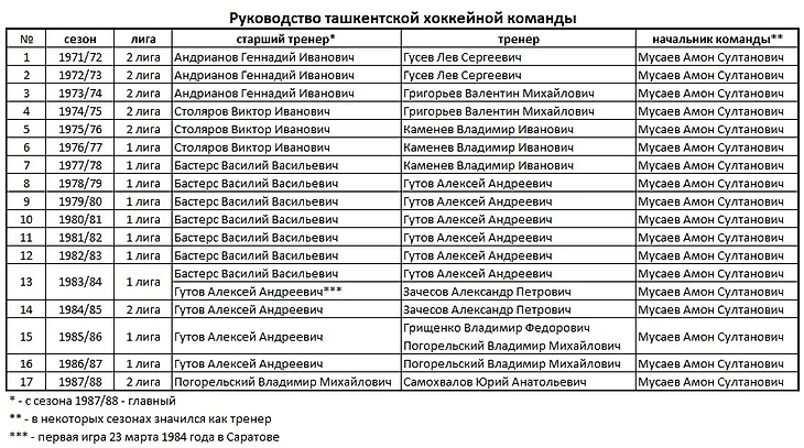 А вот все тренеры ташкентцев за всю историю выступлений команды в чемпионатах Советского Союза.