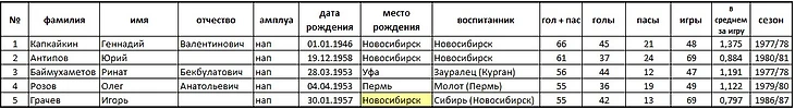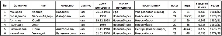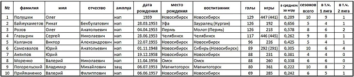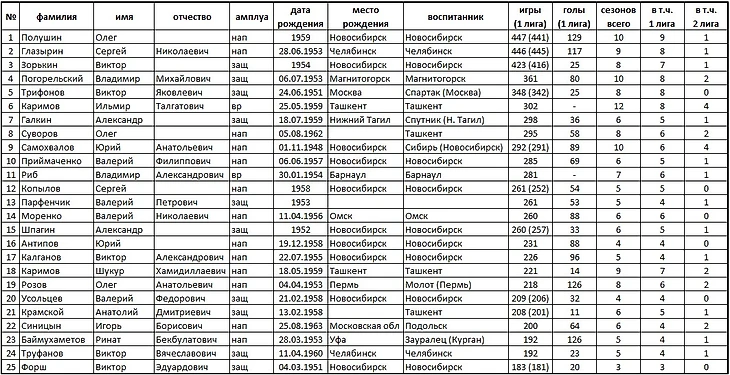 На основании статистических данных справочника «Отечественный хоккей» под общей редакцией А. Серебренникова.
