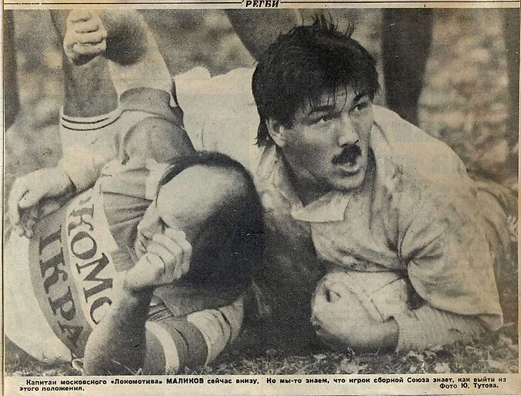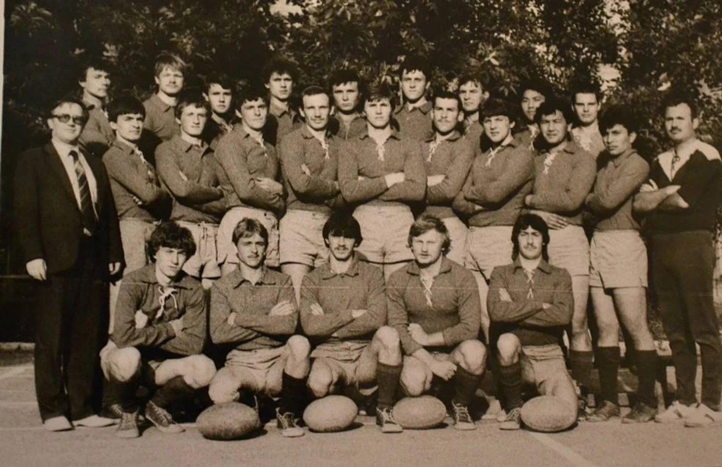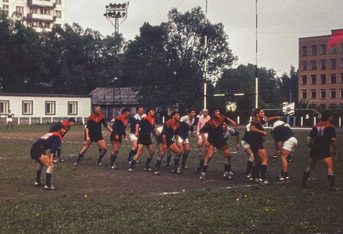 22 мая 1984 года. Москва. Стадион «Фили». Чемпионат Европы. СССР - Франция А - 3:32 (3:7). Воспитанник ферганского регби - Роман (Рауф) Маликов (первый слева)