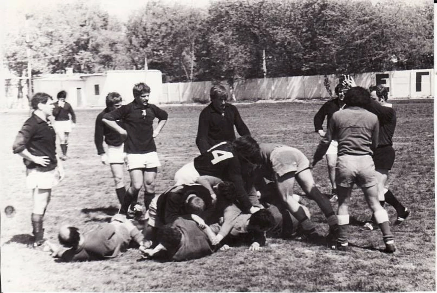 Май 1985 года. Ташкент. Регбисты таганрогской «Радуги» на тренировке