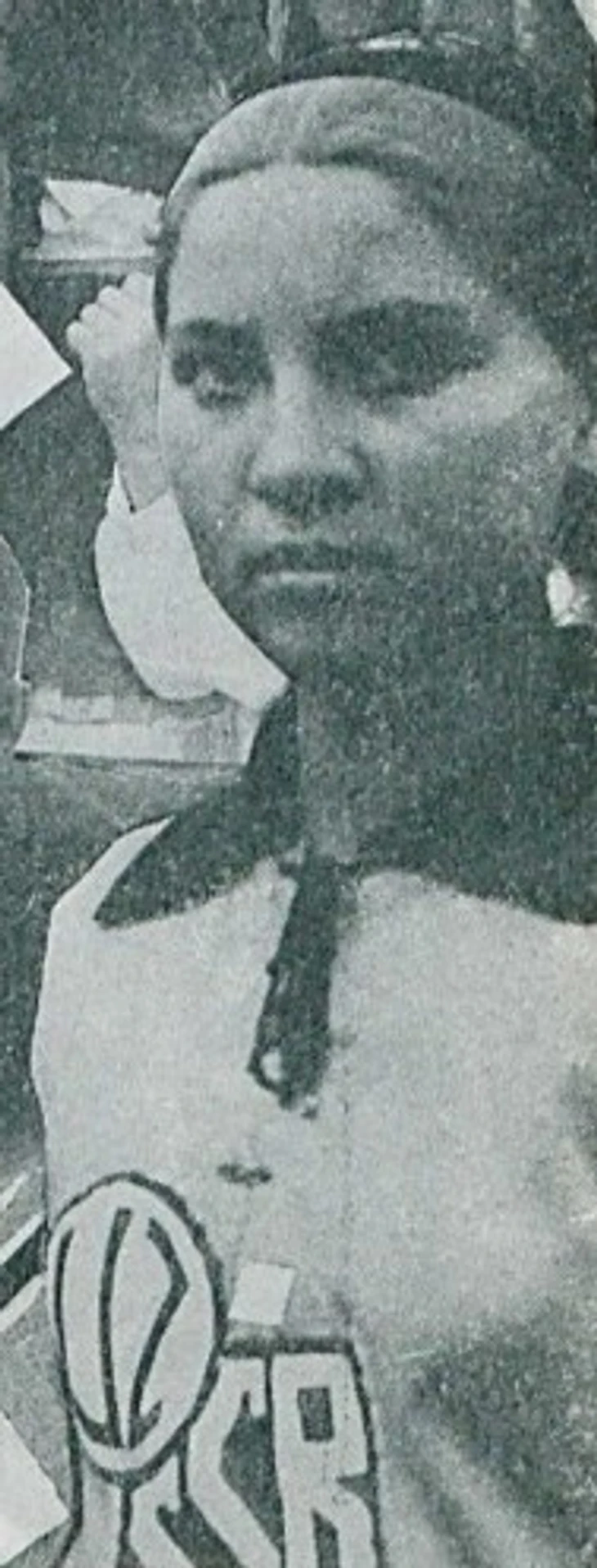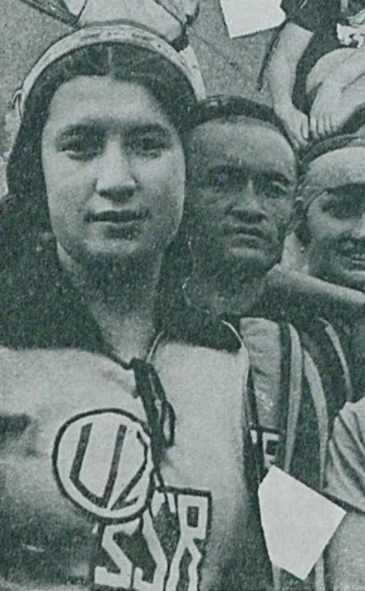 1928 год. Москва. Спартакиад. Одна из представительниц сборной Узбекской ССР в оранжевой фуфайке с белым солнцем