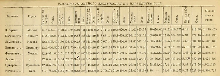 «При общем подсчете мест выделяется заметный интерес на первых местах ленинградских пловцов. Ленинград занял 14 первых мест, 9 вторых и 8 третьих. Москва заняла 11 первых мест, 12 вторых и 16 третьих. <...> Наиболее отсталыми оказались пловцы Узбекистана, Белоруссии, Северного района, Сибири и Района автономных республик» (журнал «Физкультура и спорт» № 36 за 1928 год).