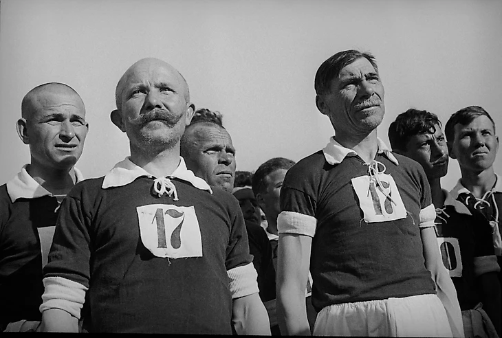 1940-е годы. «Ветераны футбола Узбекистана на построении» (фото Макса Пенсона / maxpenson.com)
