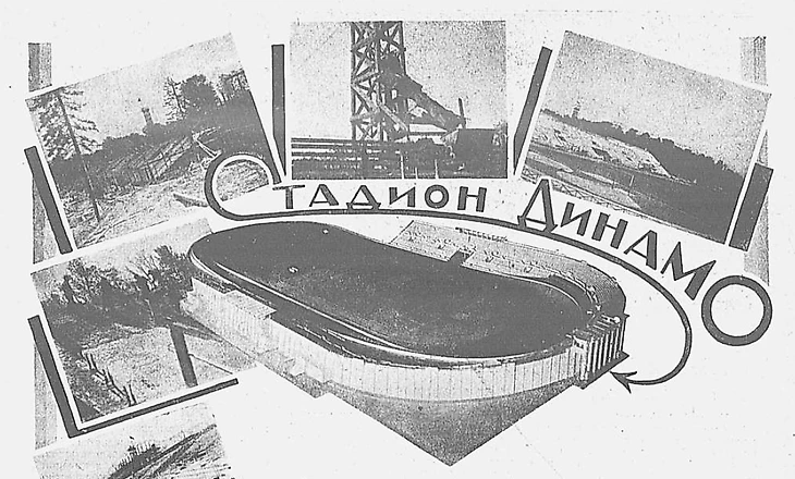 Коллаж со снимком макета стадиона «Динамо» (тогда он был подковообразный, отсутствовала Восточная трибуна) из журнала «Физкультура и спорт» № 20 за 1928 год