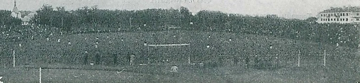 Апрель 1929 года. Туркестанское турне московской команды «Пищевики». Одна из игр в Ташкенте на стадионе имени Коммунистического интернационала молодежи (КиМ). Хозяева в полосатой форме (фото из еженедельного журнала «Физкультура и спорт» № 26 за 1929 год)