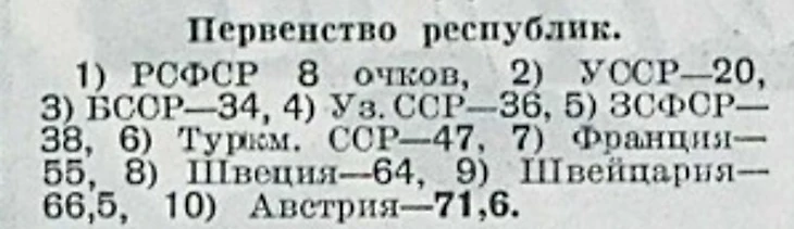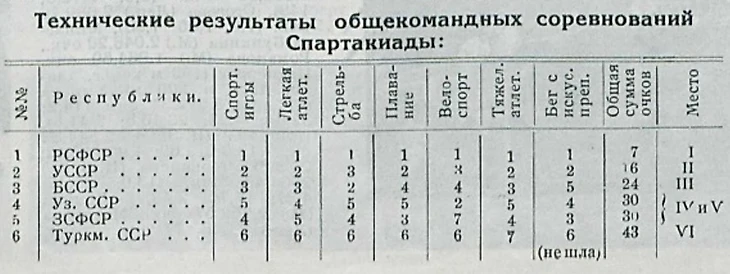 Итоги общекомандных соревнований Всесоюзной Спартакиады среди республик СССР