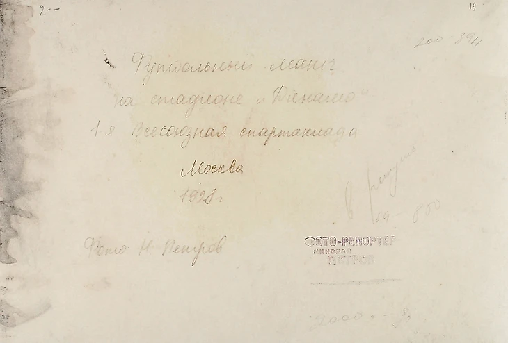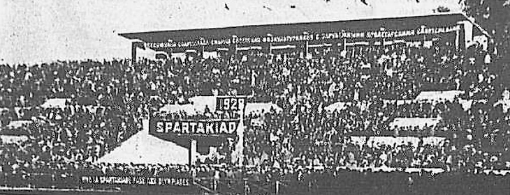 Этот снимок сделанный фотографом Николаем Петровым на стадионе ЦДКА подписан кем-то: «Футбольный матч на стадионе «Динамо». 1-я Всесоюзная спартакиада. Москва. 1928 г.» То, что это не стадион «Динамо» - очевидно. Скорее всего - это даже не матч Спартакиады. Из всех команд-участниц футбольного турнира точно известно, что со звездой играл Уругвай. Но на его форме темно-красного цвета (и фуфайки, и трусы, и гетры) звезда с серпом и молотом не видна ни на одном фотоснимке - видимо сливалась с фоном. Звезда, но другая, была на форме делегации Сибири. На стадионе ЦДКА сборная Сибири играла 17 августа 1928 года в 1/4 финала со сборной Москвы. У москвичей была своя узнаваемая эмблема - на фото ее нет. Можно допустить, что если в двух случаях ошибки, то почему ее нет в третьем - с годом? Но из-за того, что неплохо видна главная трибуна стадиона ЦДКА - оставляю ее (ru.bidspirit.com)