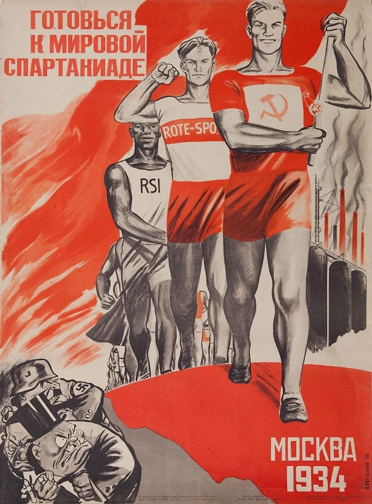 1934 год. Плакат «Готовься к Мировой спартакиаде». Художник А. Малеинов (lenin.shm.ru)