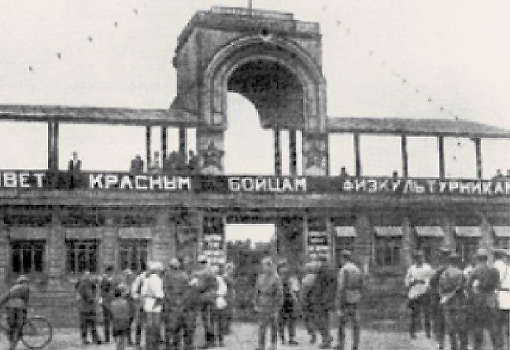 Август 1928 года. Москва. Петровский парк. Стадион «Динамо». Фасад Северной трибуны (фото из еженедельника «Физкультура и спорт» № 36 за 1928 год)