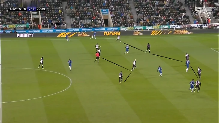 Проблески стали появляться к концу первой половины, когда «Ньюкасл» дважды просел по флангам в компенсированное время: сначала справа из-за подключения Аспиликуэты, затем слева – просто потому что забыли о Хадсоне-Одои.