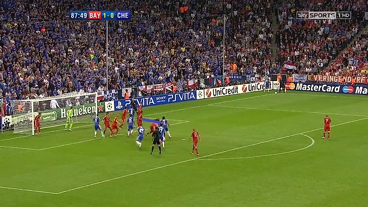 Уже на 3 минуте экстра-тайма Дрогба сфолил на Рибери и привез пенальти. Чех отразил. Сразу после этого Арьен пробил сильно выше с левой ноги. Казалось, что это надломило «Баварию». Но оказалось, что не совсем.