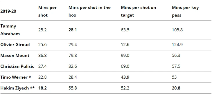 Сравнение Зиеша с другими игроками атаки «Челси» следующего сезона.