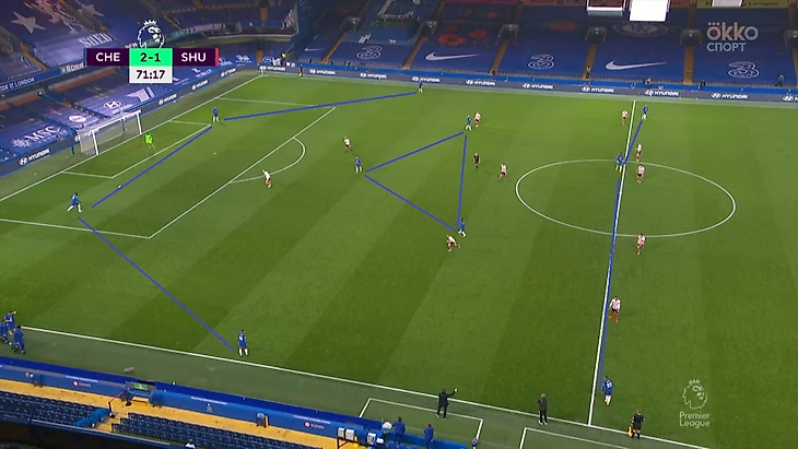 Сначала казалось, что такая система – исход плотной игры соперника. «Шеффилд» душит – значит, «Челси» вынужден форсировать владение, фуллбэки не успевают забежать вперед, а вингеры – сместиться к центру.