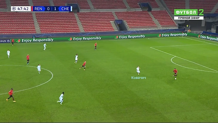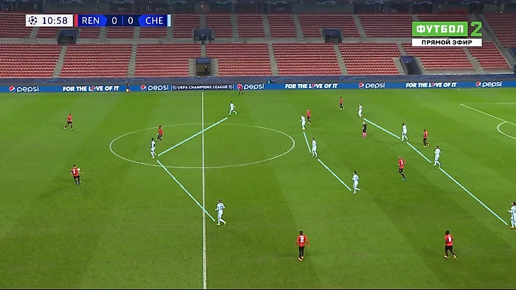 На поле же эта тактика сделала прессинг еще более интенсивным. «Челси» вкладывался в давление, а «Ренну» только этого и не хватало. Во-первых, «синие» изматывались. Во-вторых, оставляли зоны. У французов не было реджисты, который взломал бы плотную защиту соперника. Со свободой впереди делать это было легче.