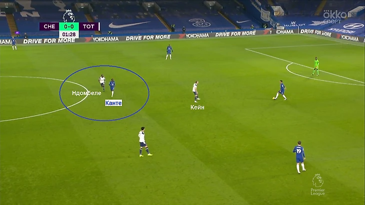 Передний блок в 4-2-3-1. Кейн действует выше, Ндомбеле держит Канте.