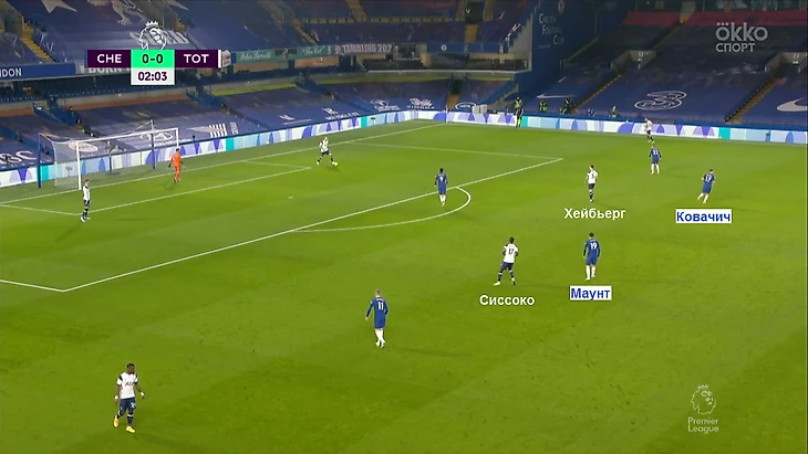 Сзади преимущество «Тоттенхэма» обеспечили хавбеки. Сиссоко и Хейбьерг постоянно откатывались в полуфланги и страховали от включений игроков «Челси» в эти зоны.