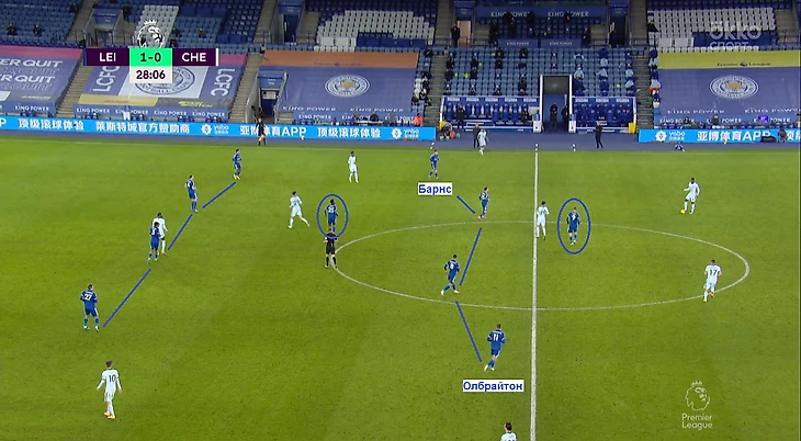 Движения Барнса и Олбрайтона ломают изначальную схему «Лестера» 4-1-4-1.