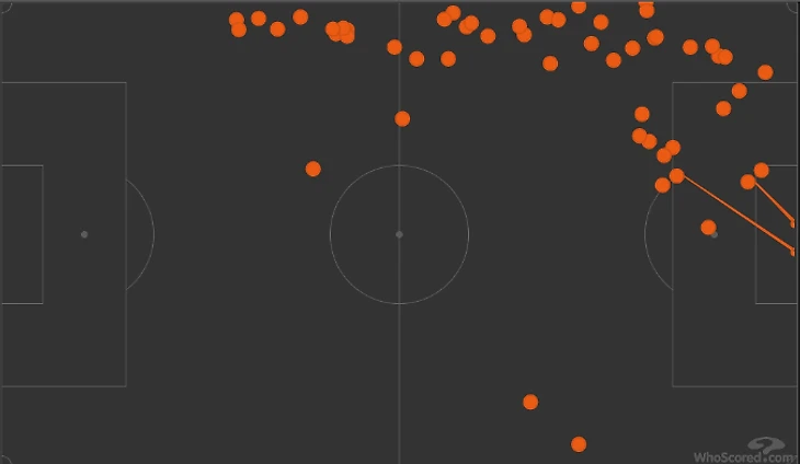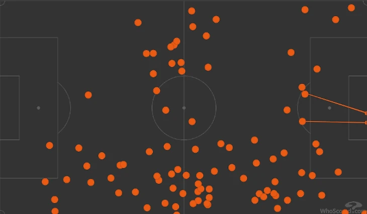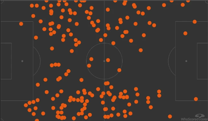 Испанцы получили активную роль на мяче. Если Джеймс и Стерлинг, которые сыграли вингбэков, смещались уже, зоны на флангах уходили Сесару и Марку. Взгляните на карту передач Аспиликуэты и Кукурельи. Существенная доля улетела с чужой половины.