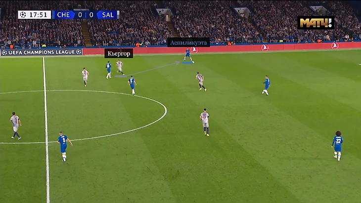 Между флангами «Челси» существовало деление: правый отвечал за розыгрыш, левый – за завершение. «Наша система строилась на трех центральных защитниках и Стерлинге с Джеймсом, которые обеспечивали ширину. Система «Зальцбурга» не дает атаковать по центру, так что Рахим и Рис обеспечивали остроту с флангов», – объяснил Поттер после матча.