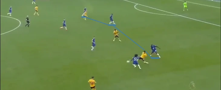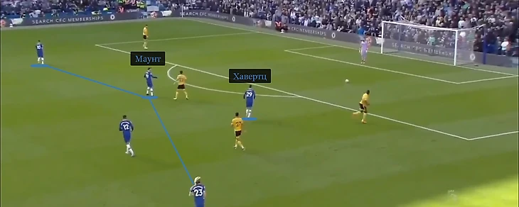 На мяче «Челси» напирал на правый фланг, через который пролетели 44% атак лондонцев. Грэм Поттер выстроил широкую атаку за счет Сесара Аспиликуэты. Испанец действовал в стиле Риса Джеймса: либо растягивал защиту «Вулверхэмптона», либо открывался под забросы в штрафную.