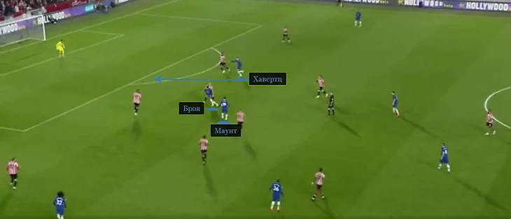 На 30-й минуте «Челси» использовал наработку дважды. Еще один раз – на 26-й. Помогал Броя, который не выдал ни одной передачи до 15-й минуты, а после и до конца тайма разбросал 11.