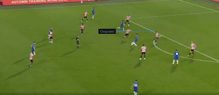 Единственная лазейка, которую «Челси» нашел в чужой защите, пришлась на левый полуфланг. Зону дважды использовал Карни Чуквуэмека: прострелил в руки Давиду Райе на 74-й и ударил на 94-й минуте. На 84-й участок понадобился Рахиму Стерлингу. Британец нанес выдал самый острый шот от гостей в матче (0,12 xG).
