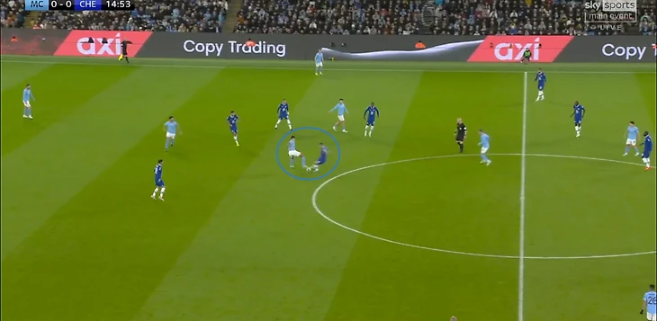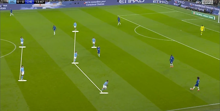Первая часть обзора может создать впечатление, что «Челси» сыграл идеально. Это не так. «Сити» тоже пробивал чужую защиту: как правило, за счет смещений Хулиана Альвареса или Рияда Мареза вглубь.