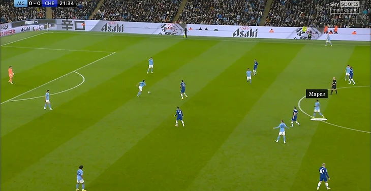 В эпизодах перед первым голом защитники «Челси» как минимум трижды упускали в штрафной Мареза и Джека Грилиша. Вингеры «Сити» наносили удары, благодаря которым зарабатывали угловые. Подбор после очередного корнера привел к штрафному, с которого хозяева открыли счет. Фол Трево Чалоба, который предварил стандарт, вытек из ошибки Закарии и Ковачича, которые пустили соперника в опорную зону.