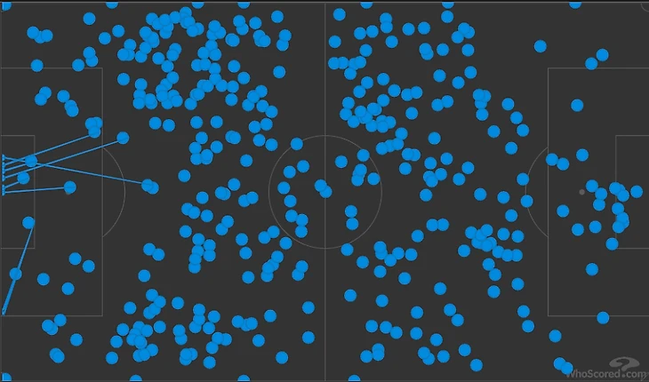 В первом тайме Пеп поставил на правый фланг, о чем говорит карта действий «Манчестер Сити».
