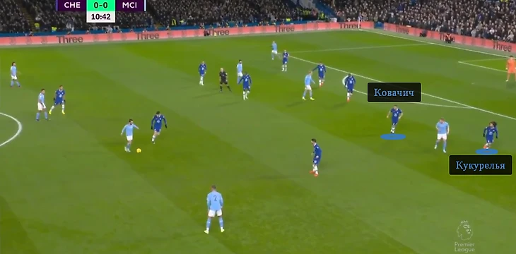 Система не принесла «Сити» ни одного внятного удара. Единственный момент «Манчестера» в первом тайме – выстрел Эрлинга Холанда на 38-й минуте – пришел после розыгрыша в центре. Причина – в подстраховке Кукурельи, которую организовали Матео Ковачич и ближайший вингер.